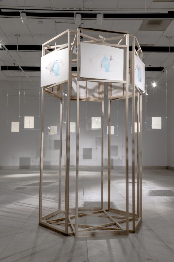 In this show I experimented with watercolour paper in the central form. I’m interested in moving toward tracing papers or translucent materials—where drawing becomes more three-dimensional.