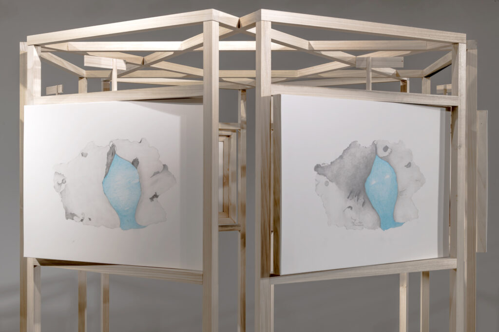 When I installed the show, I realized I had designed the wooden forms to meet and facilitate the drawings. I imagine those structures returning in future exhibitions to house new drawings—like a growing archive.